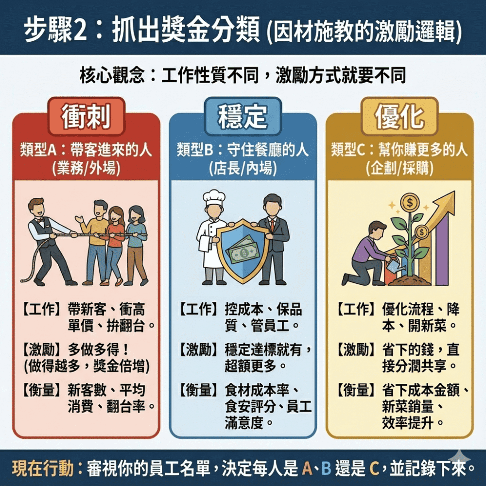 步驟二:區分員工類型,設計專屬的獎金制度