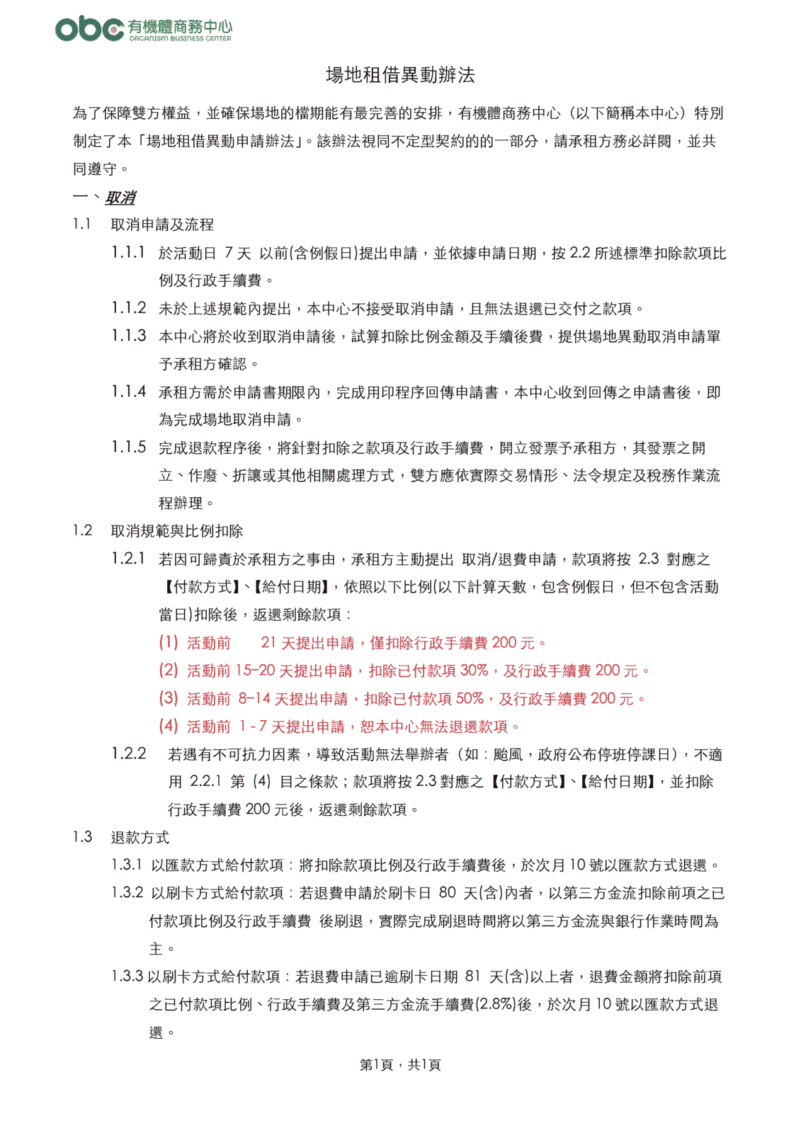 - 租借日 前 21 天|僅收取行政手續費