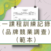 單一課程訓練記錄表(品牌競業調查)-範本NT$500有時候我們規劃的課程並非一系列的,而是以單點課程為主,這時候,你就需要單一課程訓練記錄表,記錄單次的課程大綱、主題,避免日後會重複開設雷同的課程,掌握企業的訓練進度與人員的學習狀況,即便未來有需要再重複開課給未上過的人員,也有現成的資訊可以參考或調整後使用。